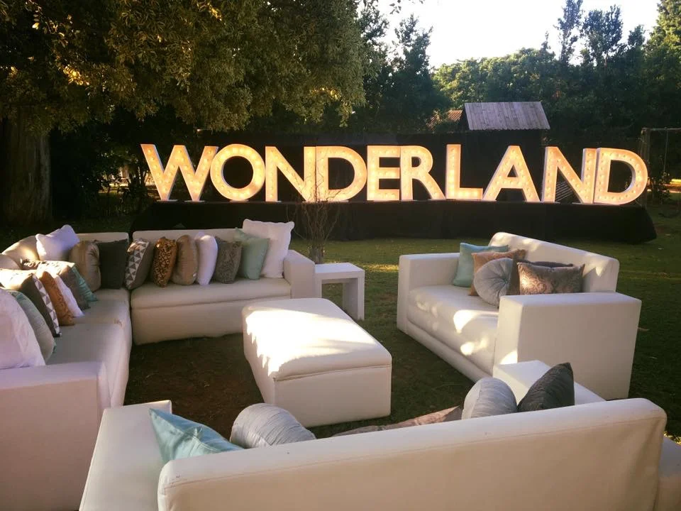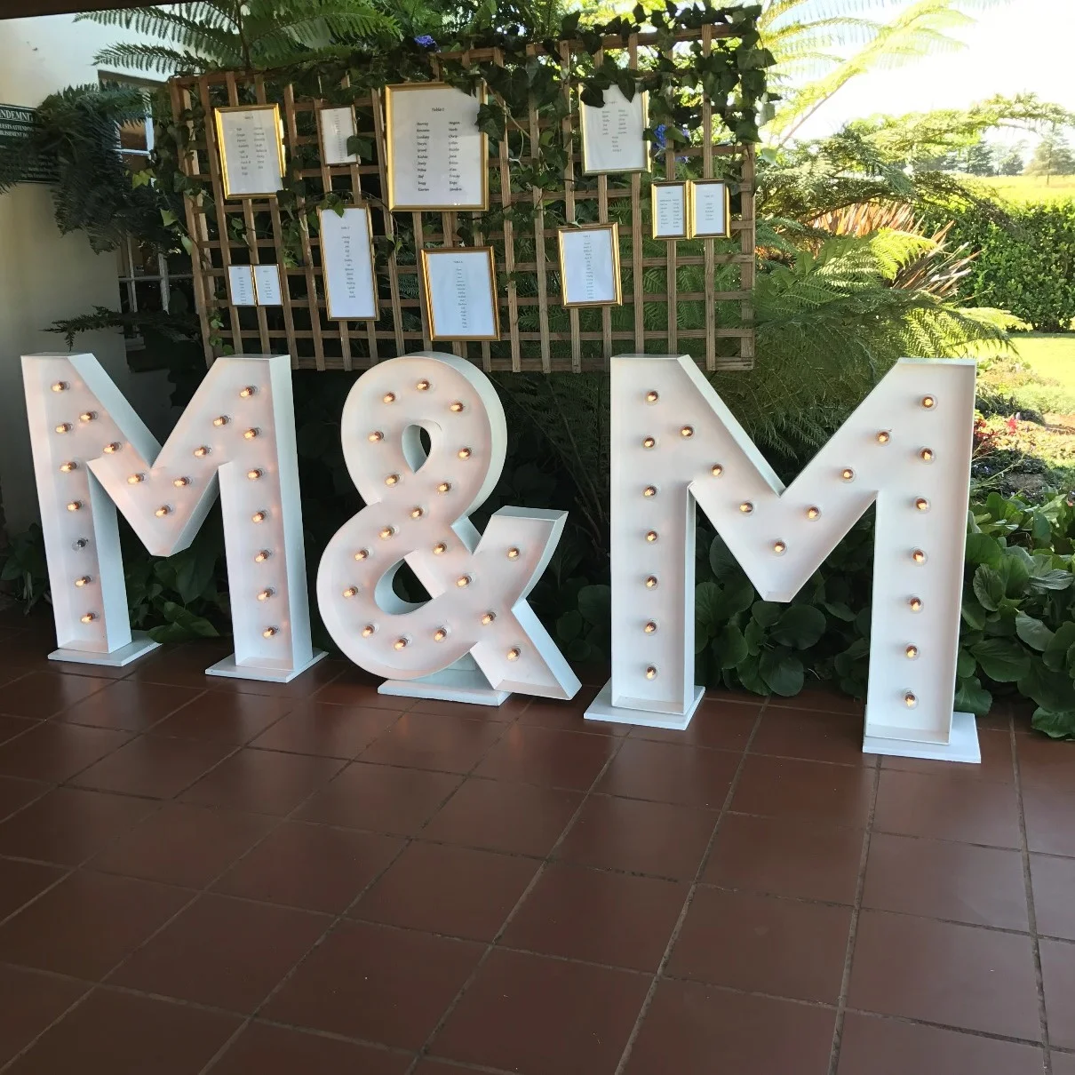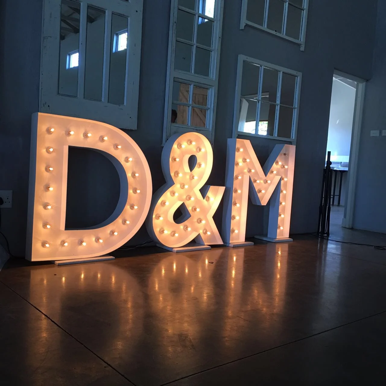 Our Illuminated marquee letters add style to any event, whether you're looking for retro styling or just something quirky. Put them on the lawn or in a forest, hang them in a tree or on the wall, as a backdrop for a photo booth or creative shoot, where ever they are they will add some serious style. Our marquee letters are unique and handcrafted by us with high-quality materials. We have the entire alphabet 3 fold and some special characters like an ampersand (&) and even a hashtag (#). If you can think of a word, phrase, name, or place, we can illuminate it in giant 1-meter high marquee letters.
