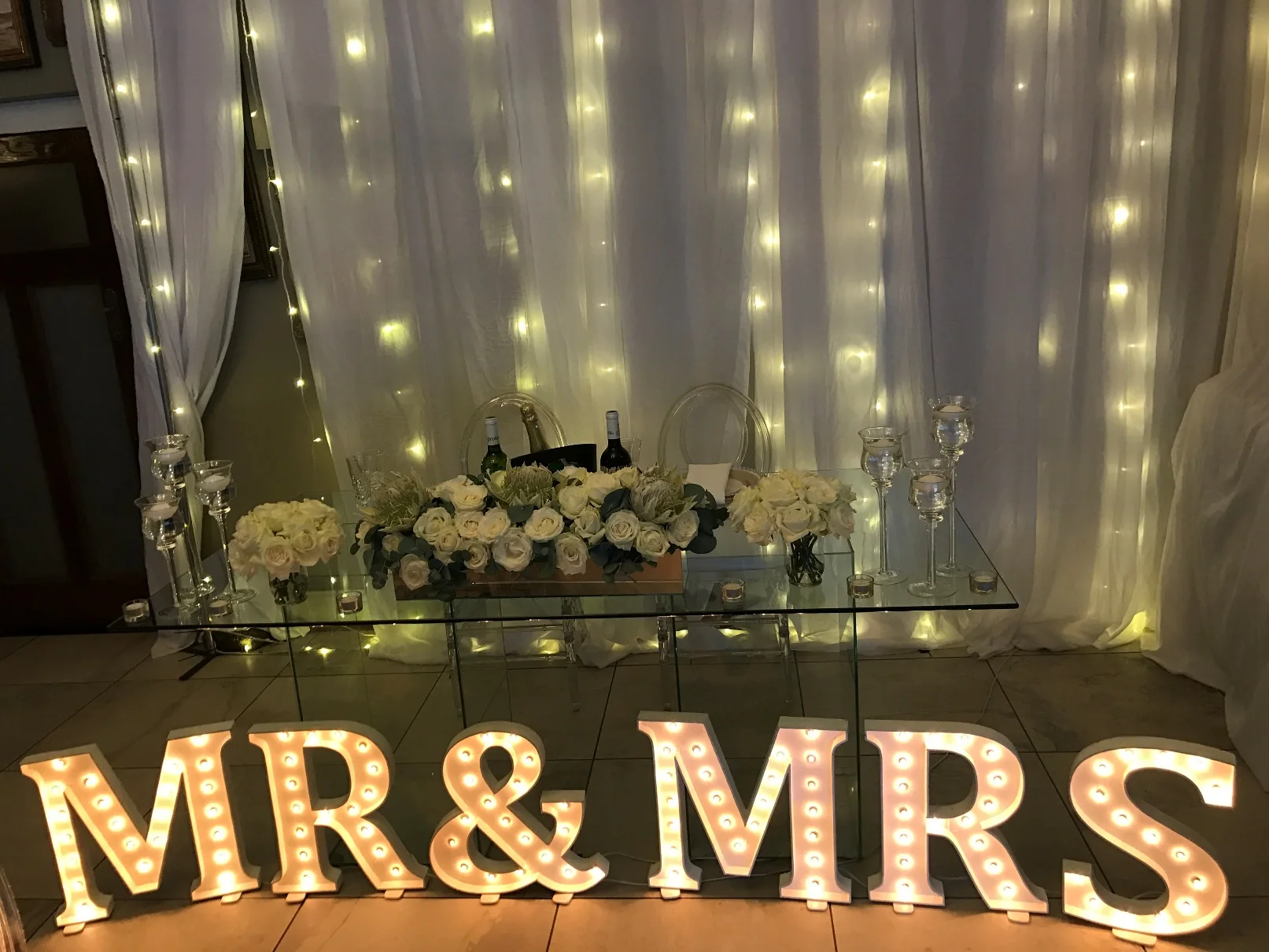 The MR & MRS Marquee letters are 400mm high and are dimmable.